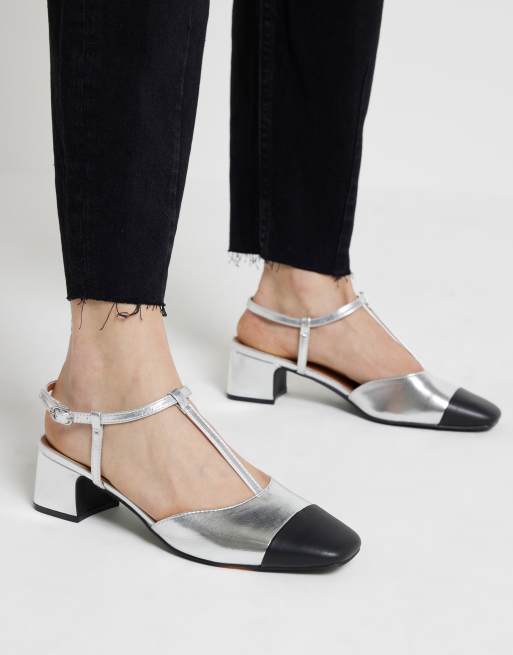 River Island Block heeled court shoes in silver