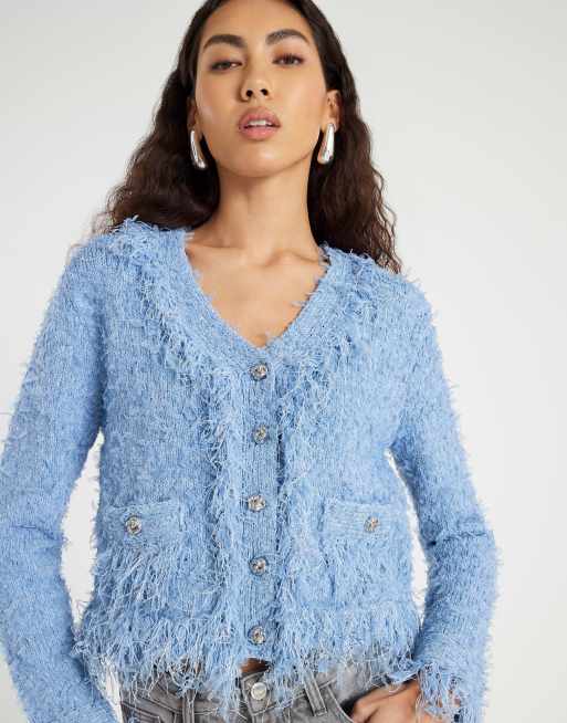 River Island Boucle long sleeve cardigan in blue - medium