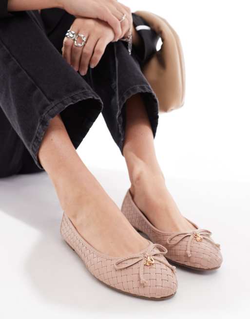 River Island bow ballerina flats in beige