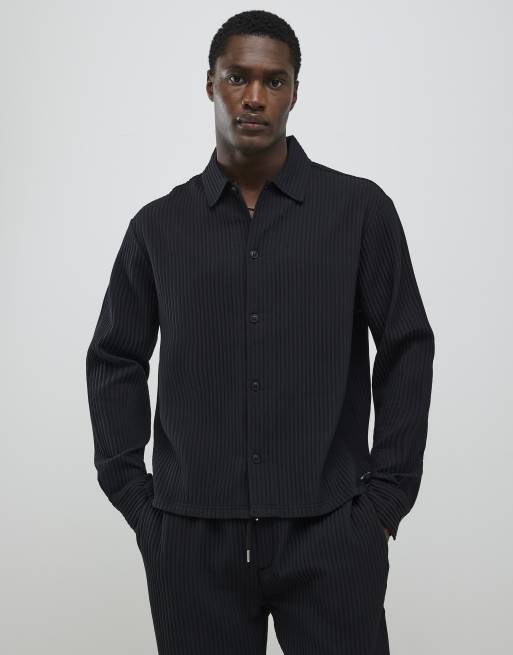 River Island Boxy fit plisse shirt in black