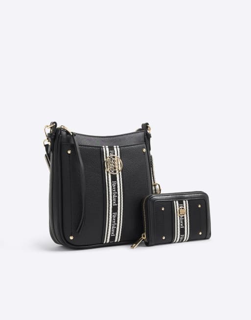River Island Branded messenger bag and purse bundle in black