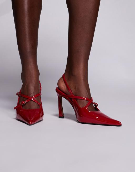 River Island buckle detail sling back heel in burgundy