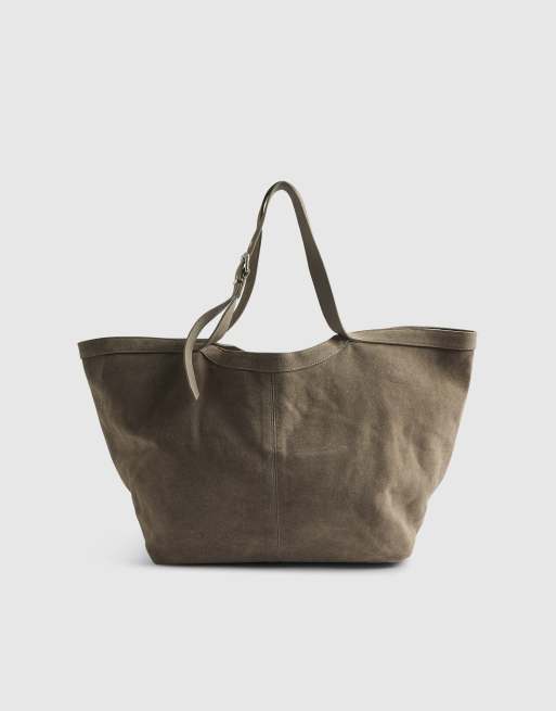 River Island Buckle handle suede shopper bag in grey