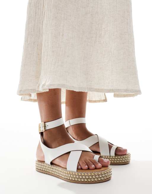 River Island buckle sandal with studded detail in white