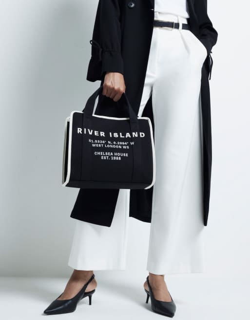 River Island Canvas embroidered tote bag in black