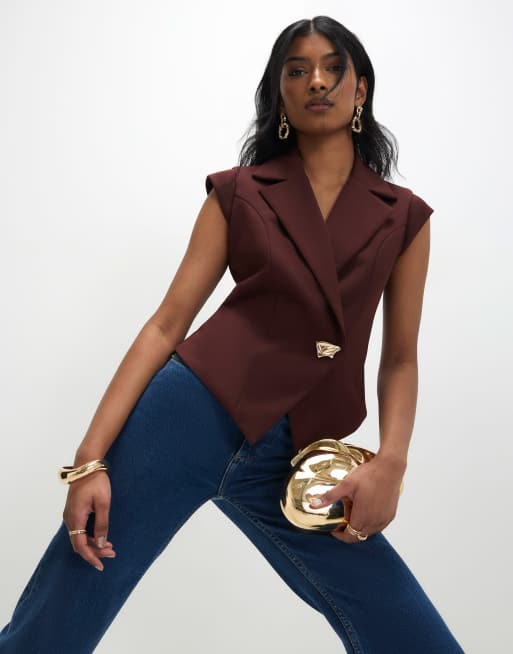 River Island Cap sleeve twill waistcoat in brown - dark