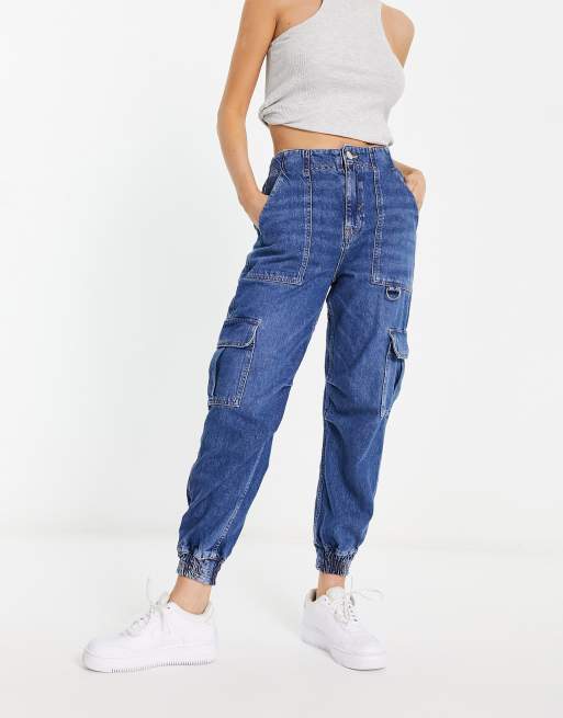River Island cargo jeans with pocket detail in blue denim