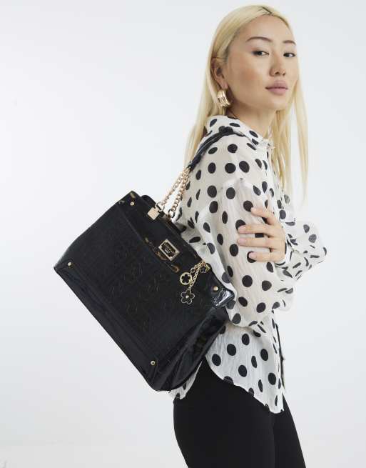 River Island Chain handle embossed tote bag in black