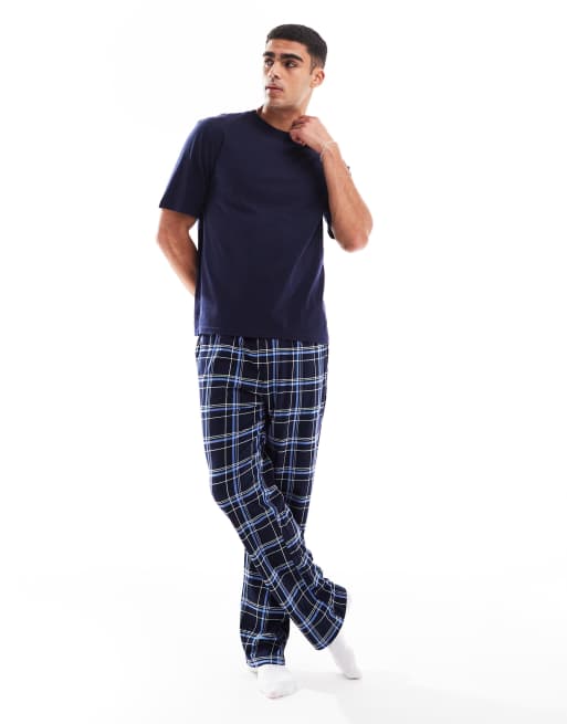 River Island check pyjama set in navy