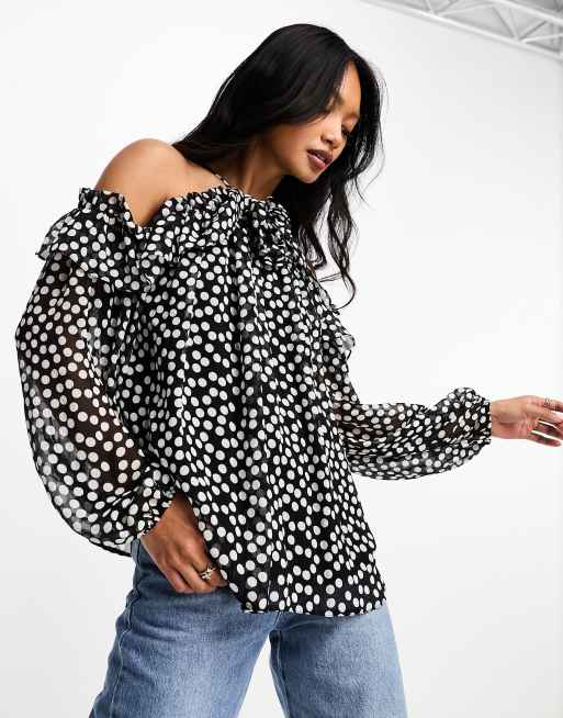 River Island chiffon corsage blouse with long sleeves in white