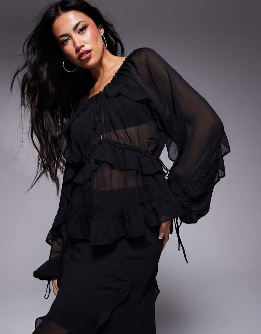 River Island chiffon ruffle tie detail blouse in black
