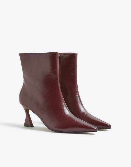River Island Chisel toe ankle heeled boots in red - dark