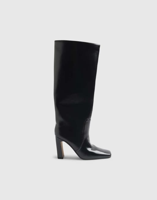 River Island Chisel toe high leg boots in black