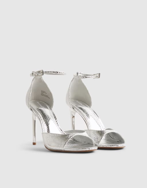 River Island Closed back heeled sandals in silver