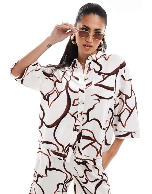 River Island co-ord abstract print boxy shirt in brown