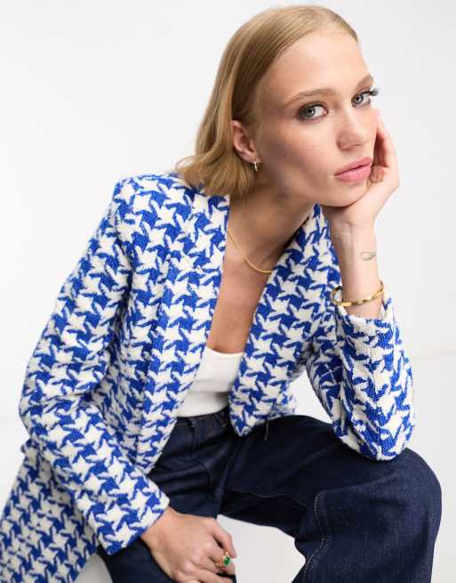 River Island co-ord dogtooth boucle blazer in blue