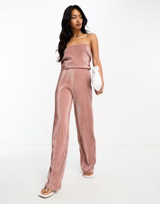 River Island co-ord plisse flare trouser in dark pink