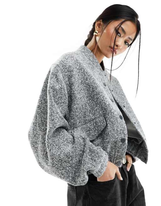 River Island co-ord wool bomber jacket in grey