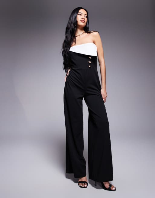 River Island contrast trim bandeau jumpsuit in black