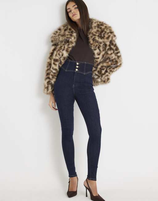 River Island Corset skinny jeans in denim - dark