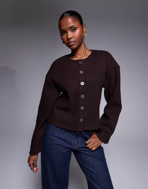 River Island cosy button through cardigan in dark brown