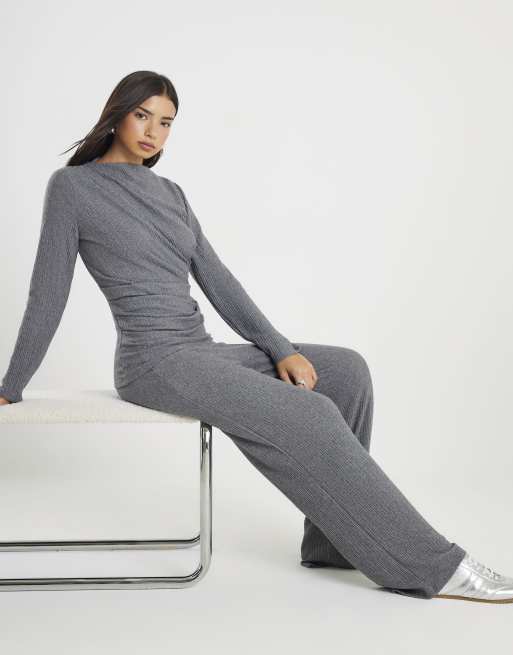 River Island Cosy ribbed wide leg trousers in grey - dark