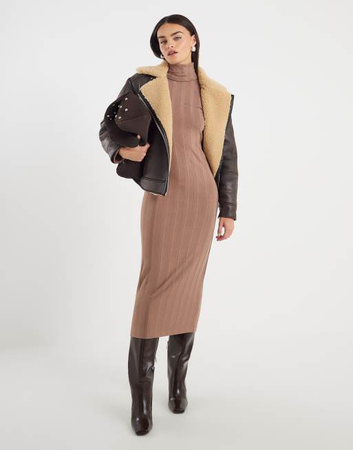River Island Cosy wide rib midi dress in beige