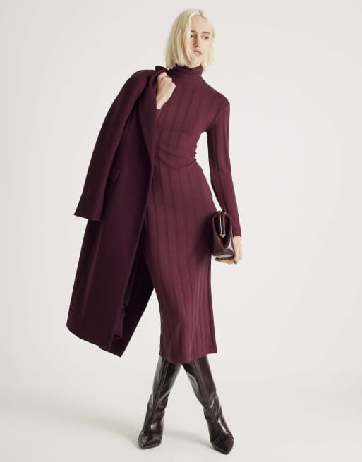 River Island Cosy wide rib midi dress in red - dark