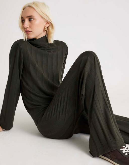 River Island Cosy wide ribbed trousers in green - dark