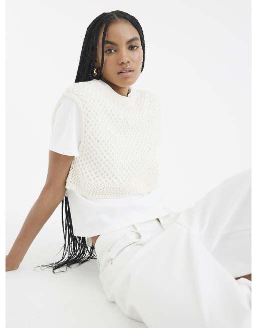 River Island Crochet overlay t-shirt in cream