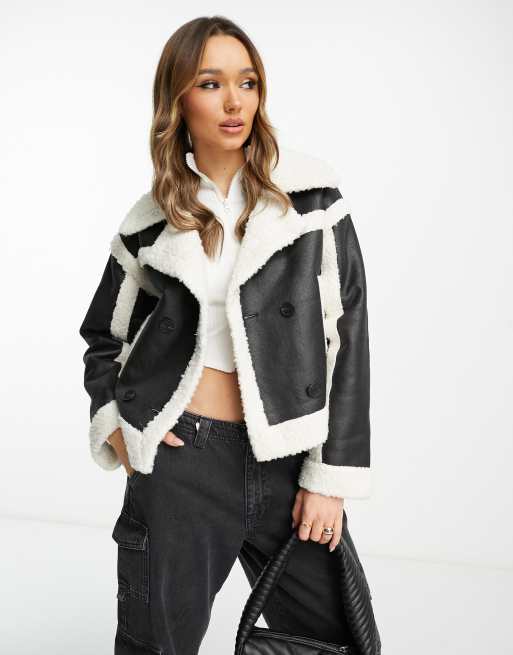 River Island cropped aviator jacket in black