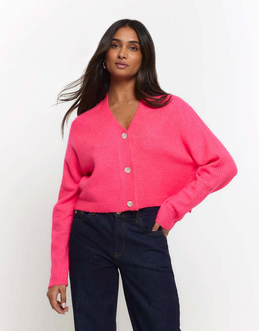 River Island Cropped cardigan in pink - bright