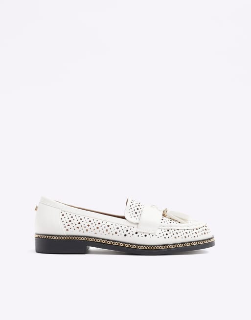 River Island Cut out tassel loafers in white
