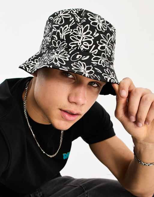 River Island daisy print canvas bucket hat in black