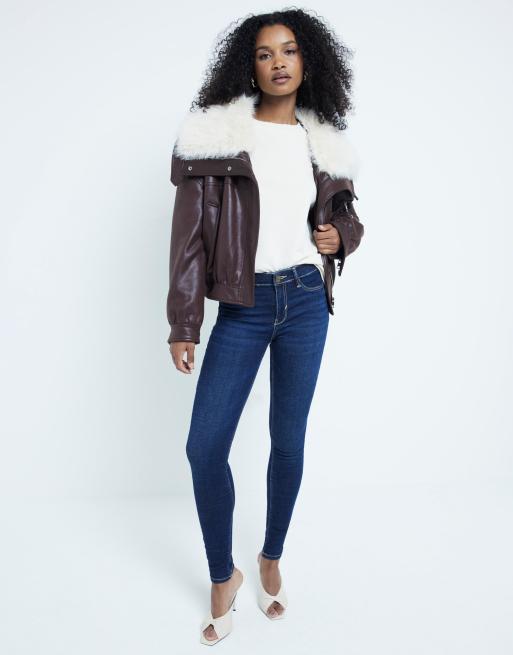 River Island Denim mid rise molly sculpted jeans in denim - dark