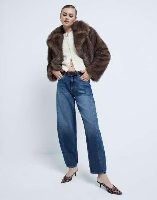 River Island Denim relaxed straight seamed barrel jeans in denim - medium