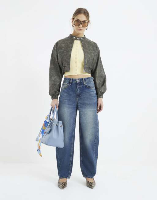 River Island Denim seamed barrel jeans in denim - medium