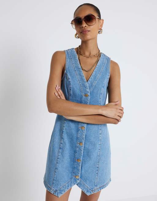 River Island Denim waistcoat shift mini dress in denim