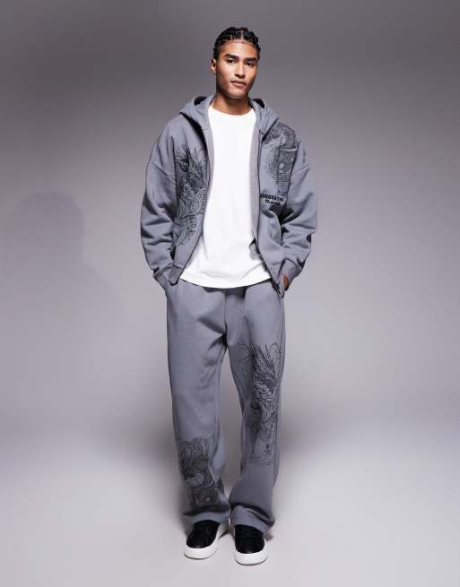 River Island dragon print tracksuit in grey