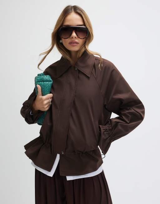 River Island Drop hem drawstring jacket in brown - dark