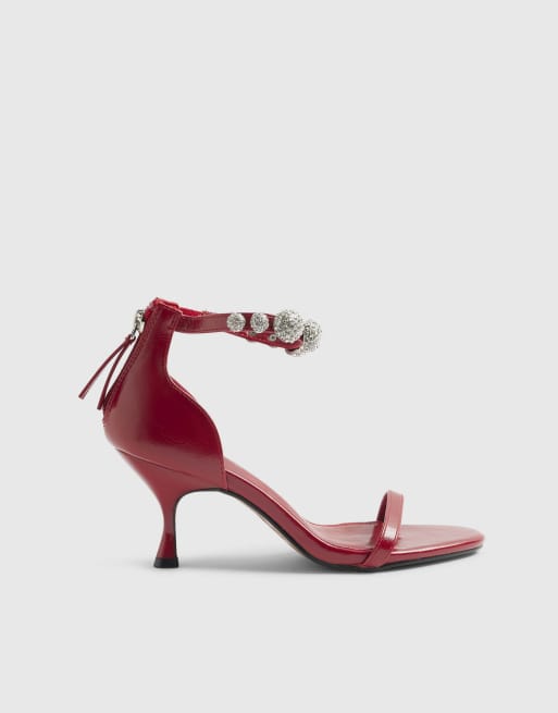River Island Embellished ankle strap heeled sandals in red