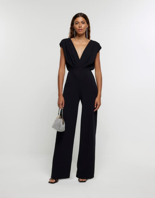 River Island Embellished wide leg jumpsuit in black