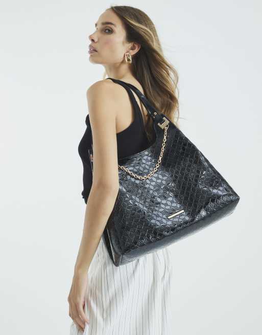 River Island Embossed ri monogram chain slouch bag in black