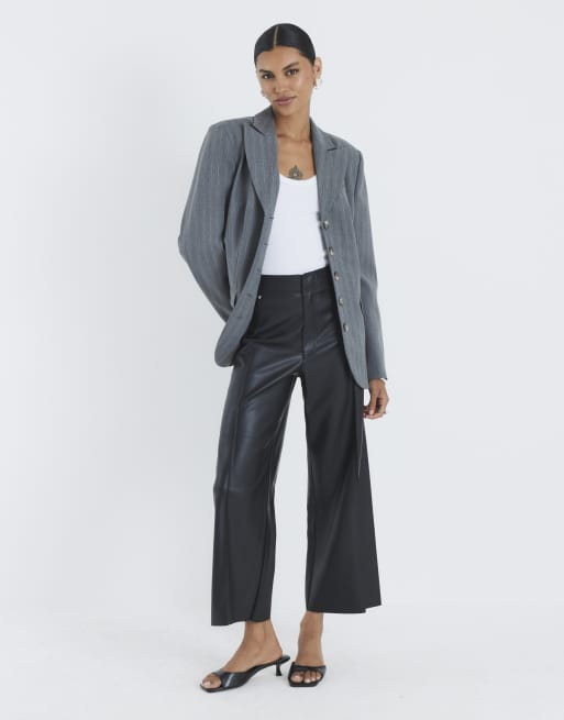 River Island Faux leather cropped trousers in black