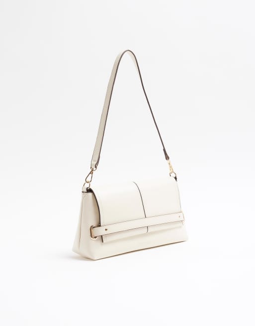 River Island Faux leather fold over clutch bag in cream