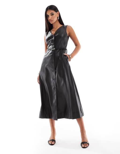 River Island faux leather midi pinny dress in black