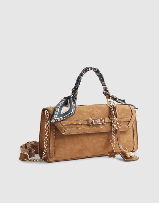 River Island Faux suede charms cross body bag in brown