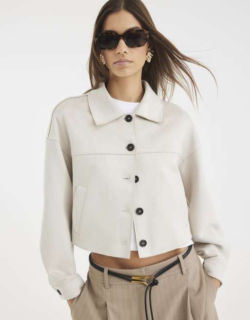 River Island Faux suede overshirt in stone - light