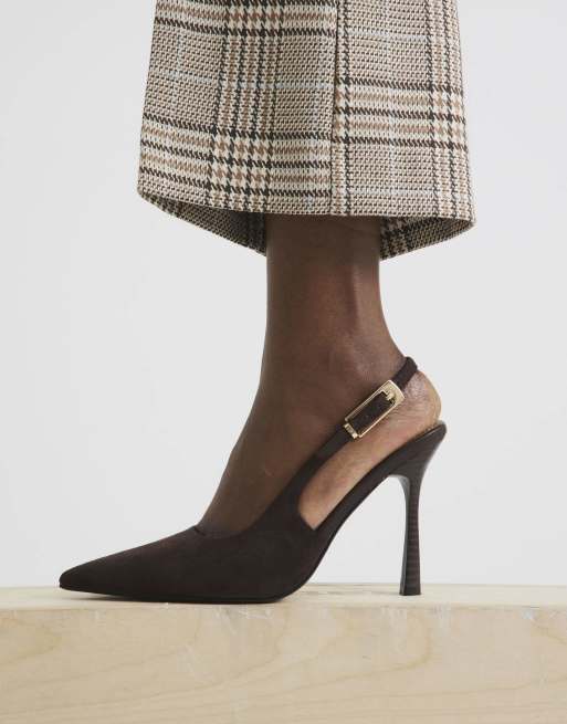 River Island Faux suede slingback buckle court heels in brown