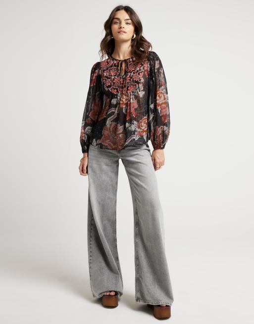 River Island Floral embellished smock top in black